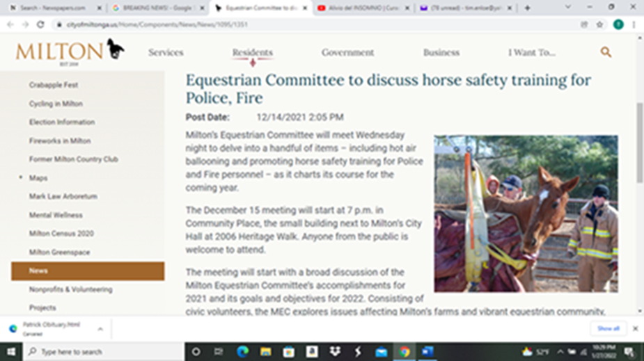 “Regarding Milton’s anti-equestrian stance, this incident occurred during the Citizens’ Government Academy, facilitated by the City of Milton, on 2/15/2022.